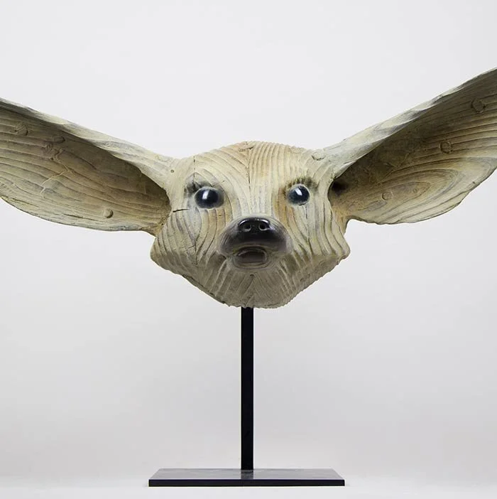 L’artiste façonne le bois, le bronze et la fonte de fer, apportant délicatesse et originalité dans les textures et démesure dans les dimensions monumentales des pièces. Il suscite la surprise par les changements d’échelle de certaines de ses sculptures : un crâne de chat pesant 80 kilogrammes, un crâne de flamand rose mesurant plus de 4 mètres, une vertèbre aux mensurations hors norme surgissant de terre !